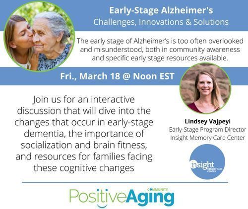 The early stage of Alzheimer’s is too often overlooked and misunderstood, both in community awareness and specific early stage resources available. Join us for an interactive discussion that will dive into the changes that occur in early-stage dementia, the importance of socialization and brain fitness, and resources for families facing these cognitive changes.